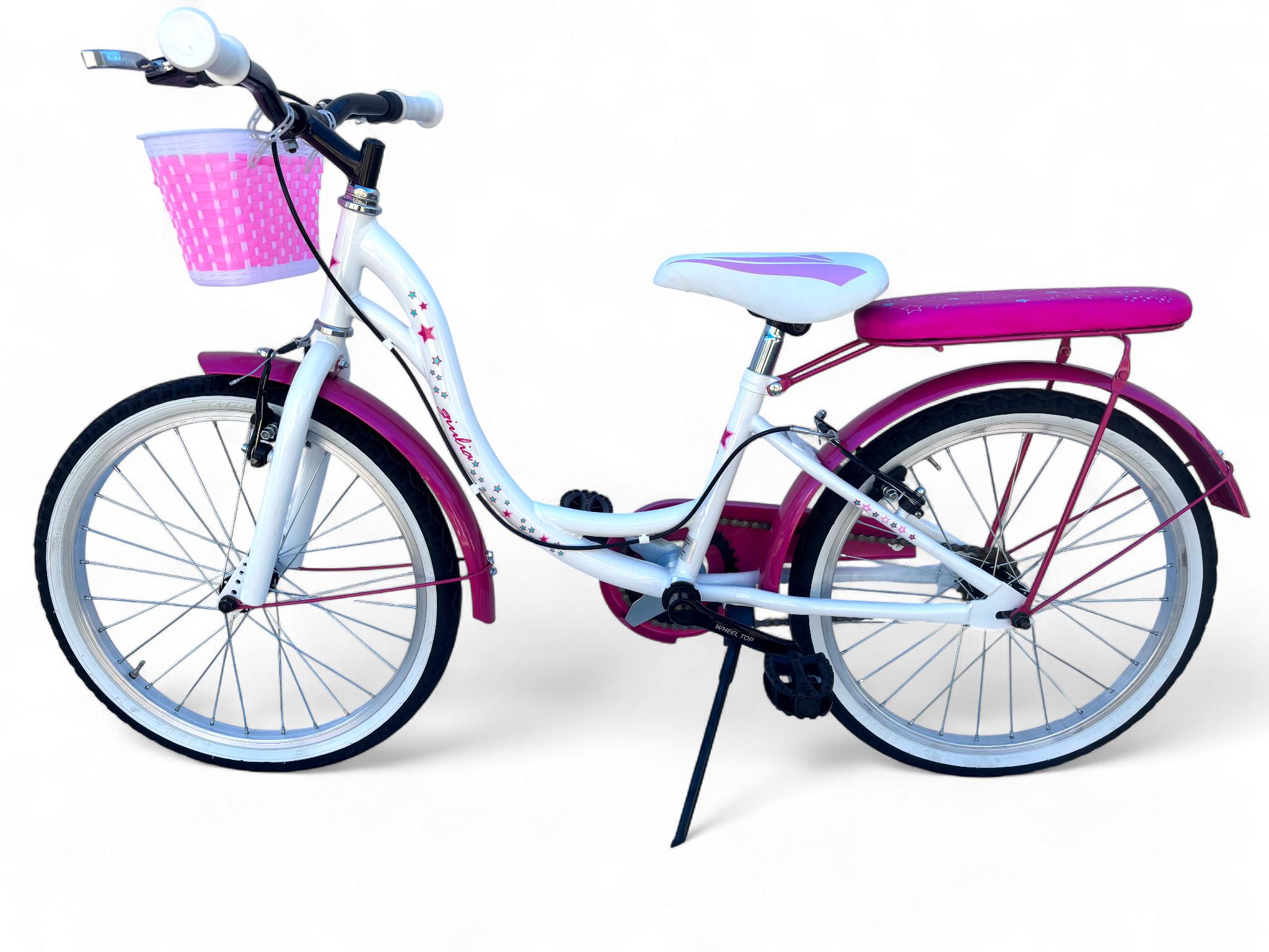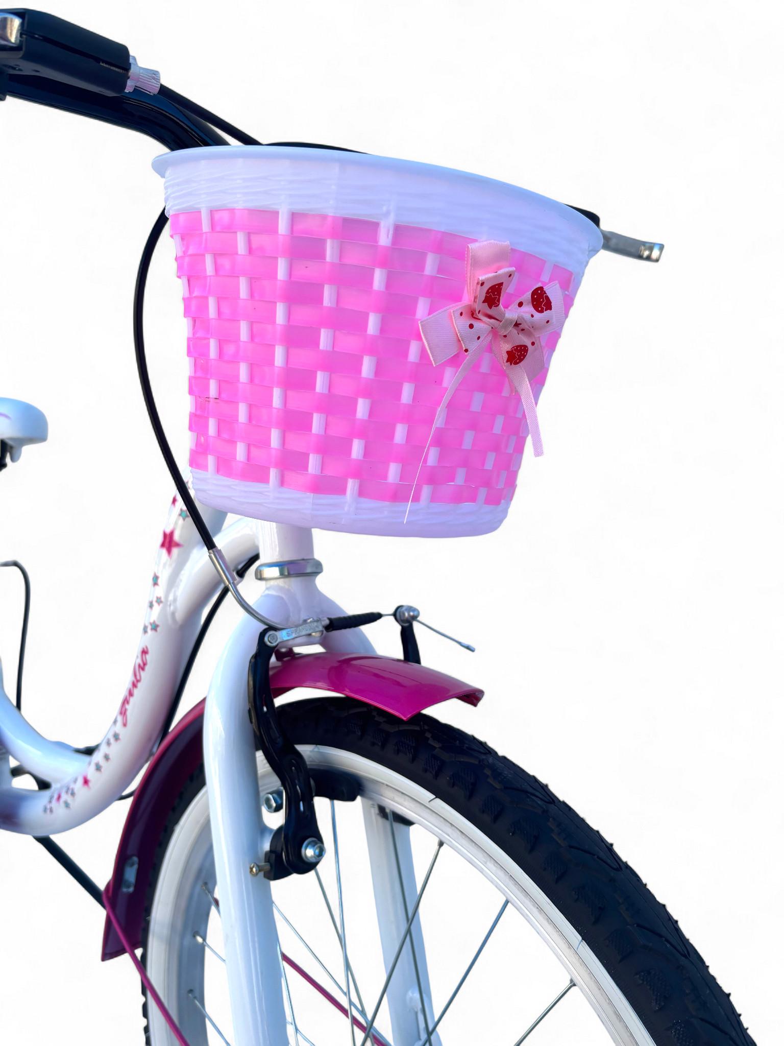 Bicicletta Bambina Da 6-8 Anni Bici 20″ Con Cestino Bianca Rosa (1,20-1,35 M)