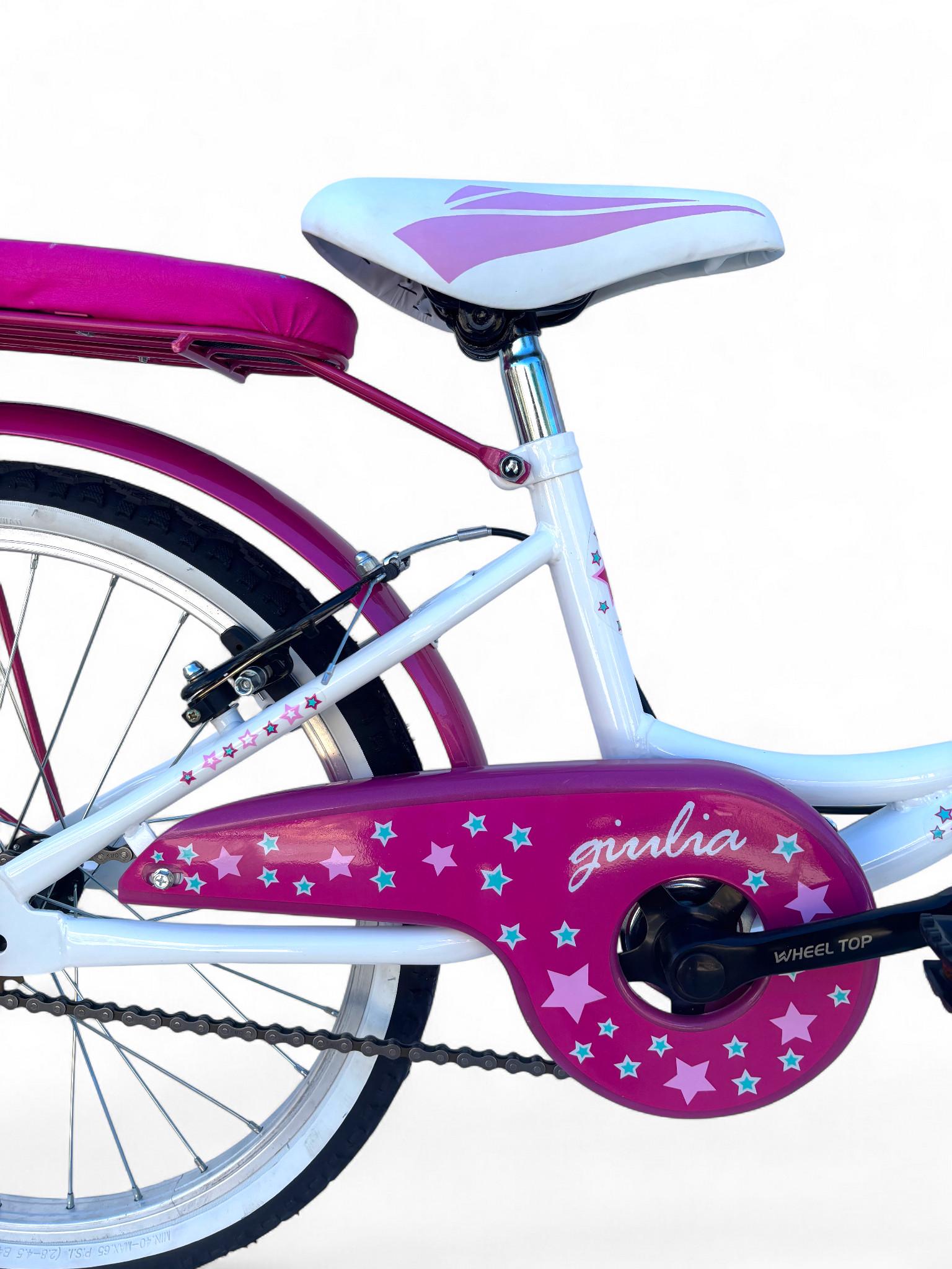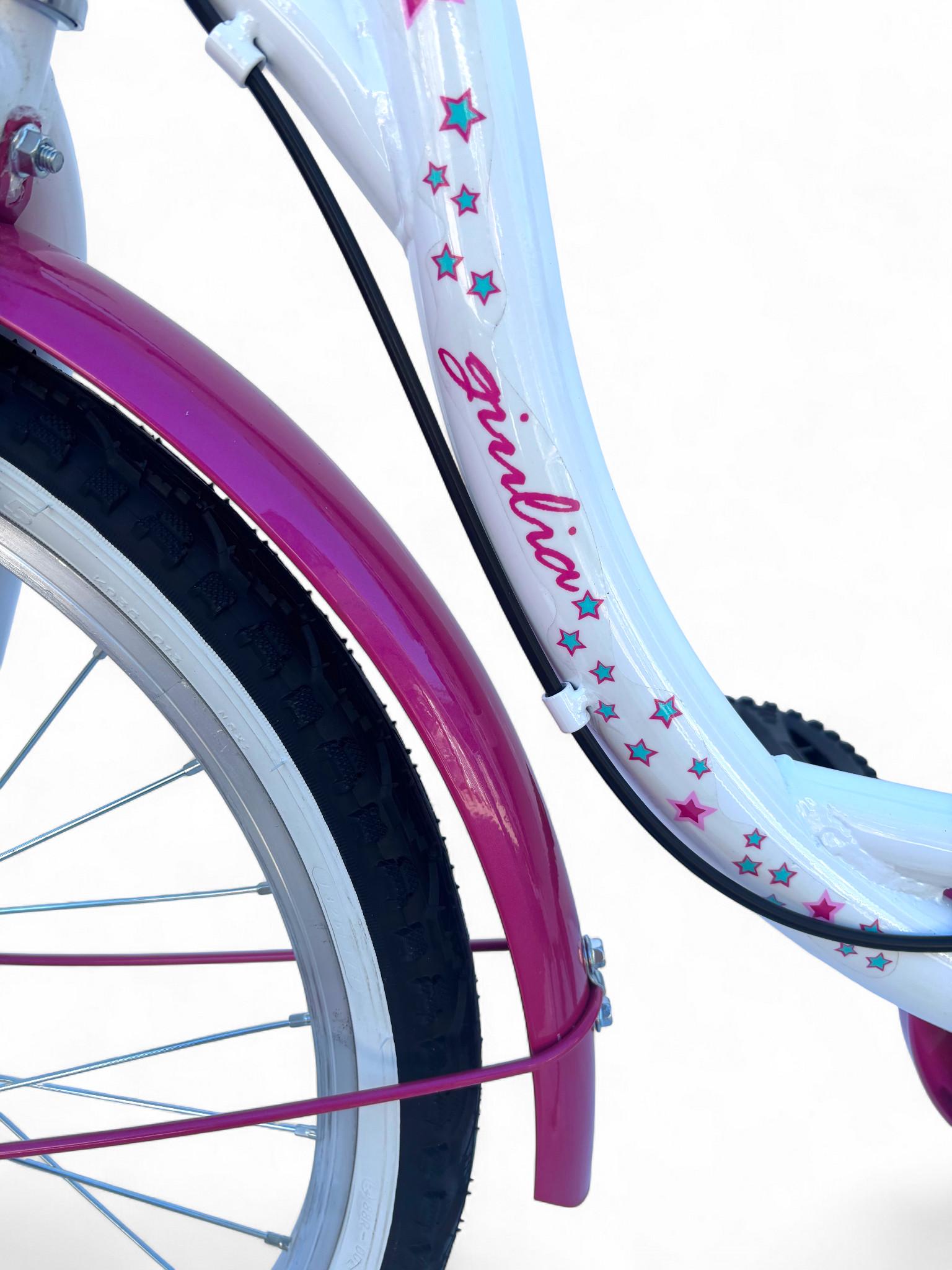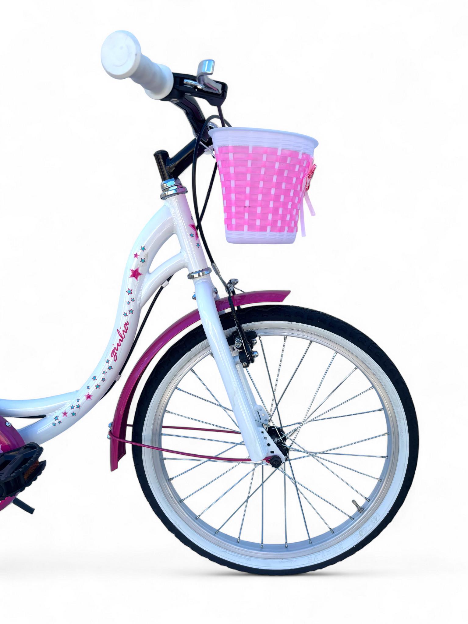La Bicicletta da Bambina 20" Bianca e Rosa è pensata per accompagnare le piccole cicliste nelle loro prime vere esperienze su due ruote, con uno stile accattivante e una qualità costruttiva superiore. Realizzata in acciaio resistente, questa bici non è un semplice giocattolo, ma un mezzo sicuro, durevole e progettato per crescere con la bambina.