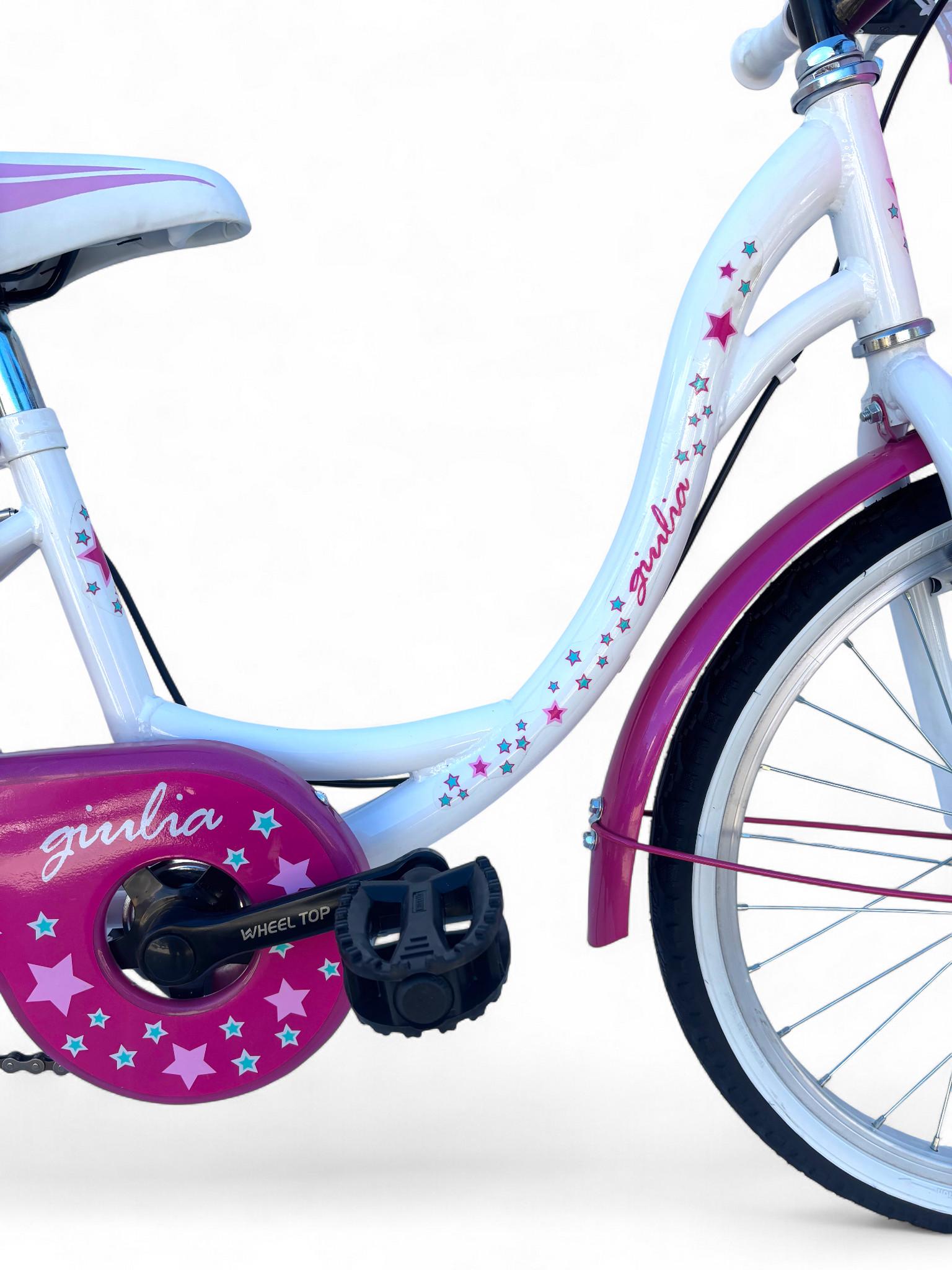 Il comfort di guida è garantito da una sella morbida e manopole ergonomiche che offrono una presa salda e piacevole. Le ruote da 20” la rendono perfetta per bambine di età compresa tra 6 e 8 anni (altezza 1,20–1,35 m), offrendo equilibrio e stabilità. Inoltre, è possibile montare le rotelle per chi ha bisogno di maggiore sicurezza nelle prime fasi di apprendimento.