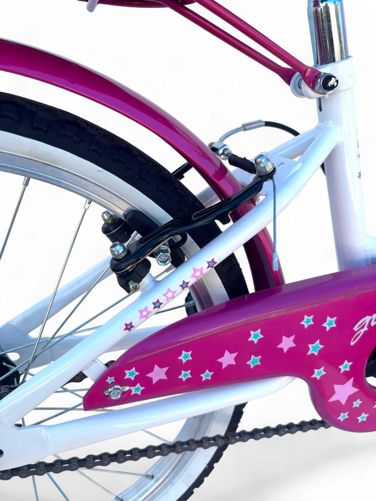 [SICUREZZA E STABILITÀ] Ruote da 20” ideali per un controllo ottimale, freni affidabili e struttura resistente assicurano una guida stabile e sicura, incoraggiando le bambine a pedalare in autonomia e fiducia.