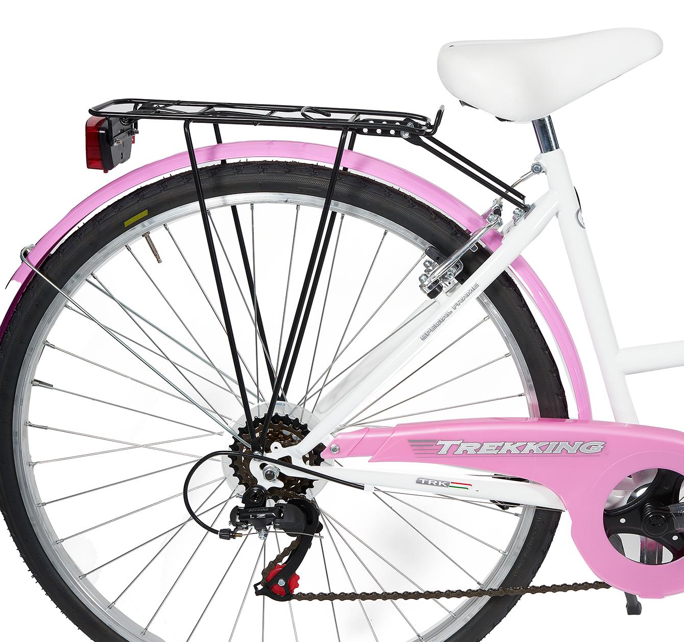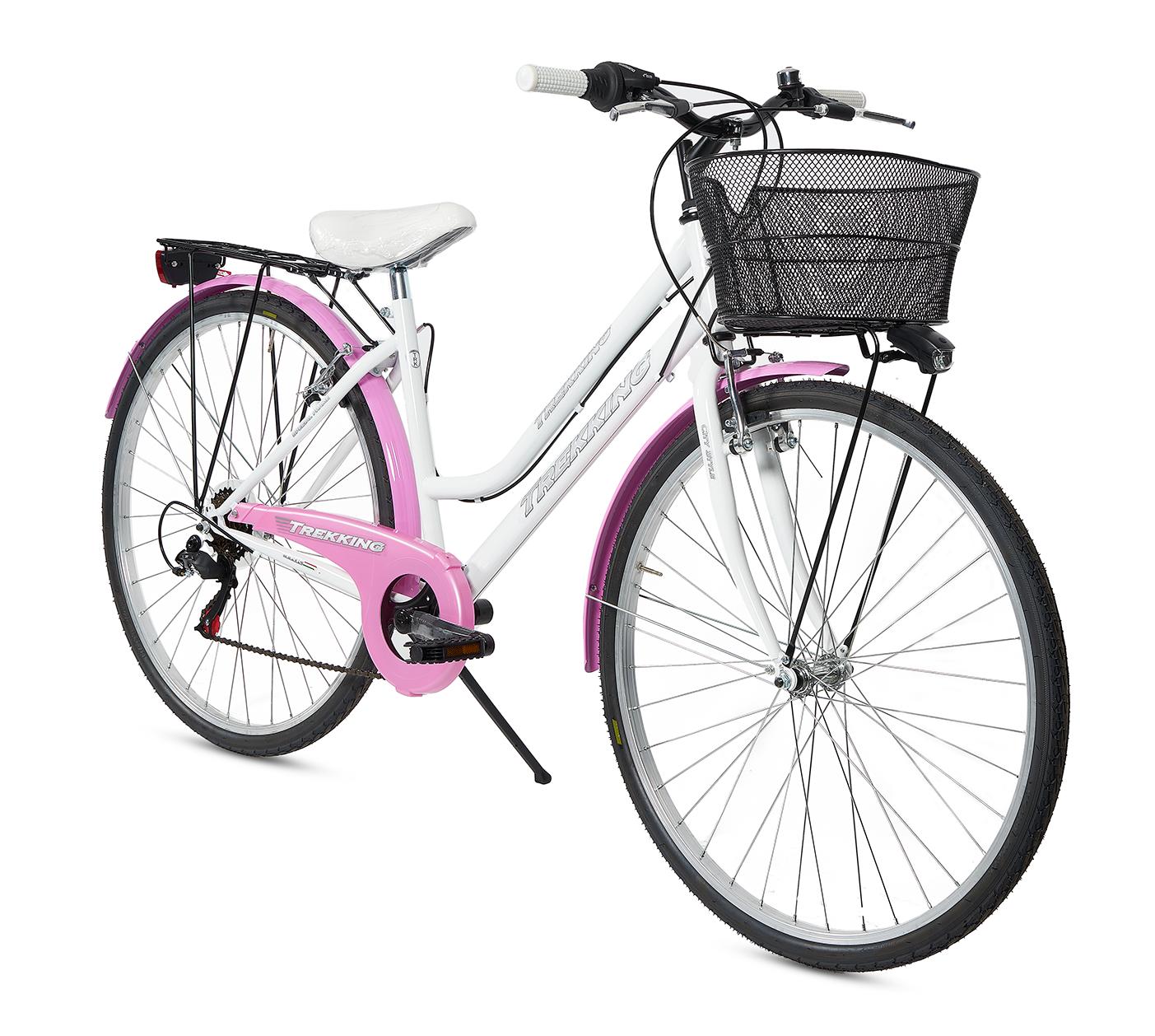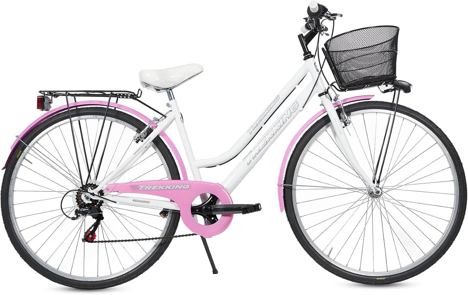 Bicicletta Donna Passeggio Misura 28 Bici Città Con Cambio, Cestino Bianco Rosa