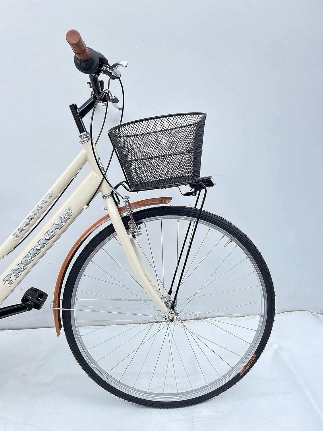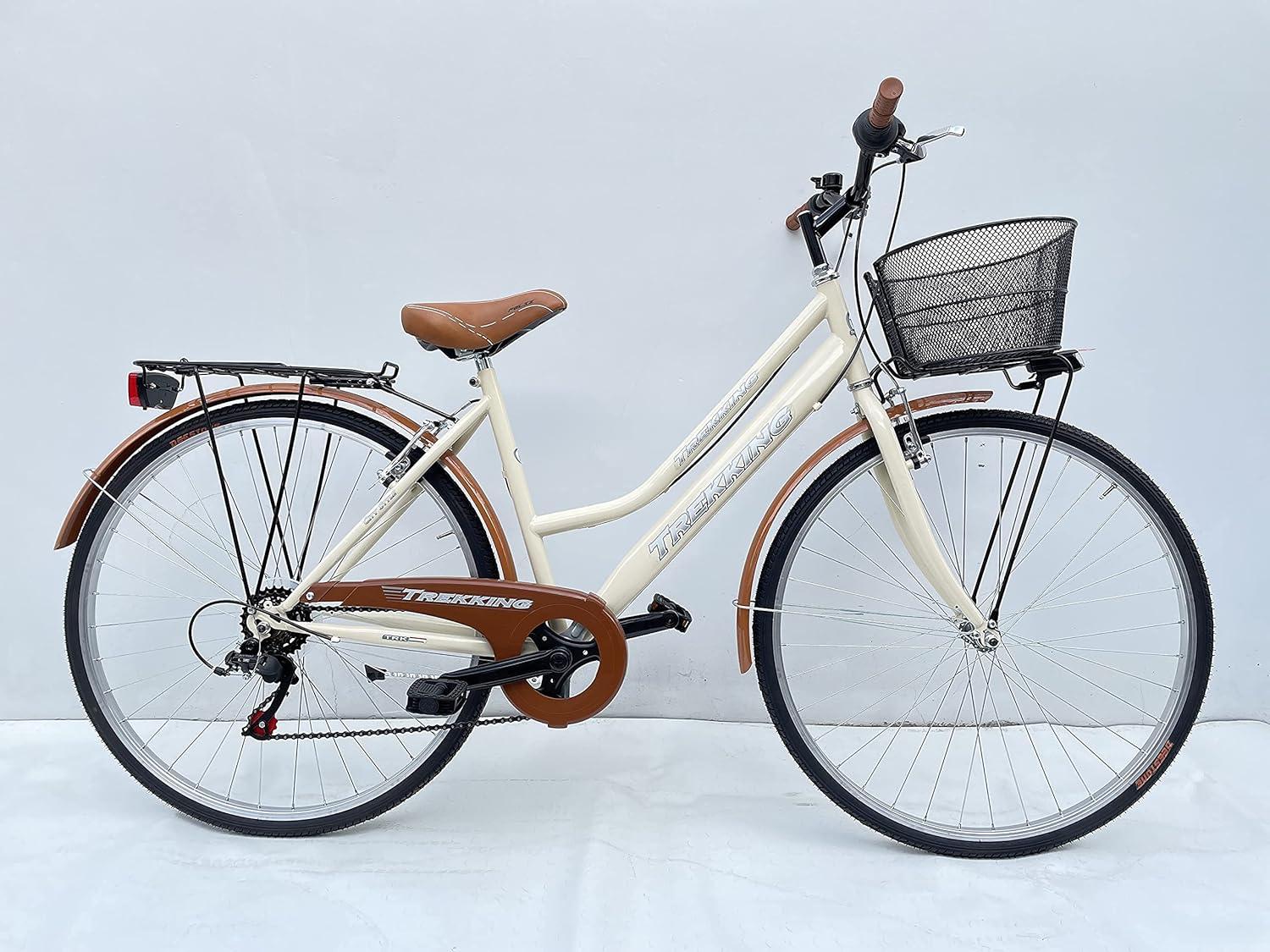 Bicicletta donna 28″ beige con cambio e cestino. Perfetta per il massimo comfort nei tuoi tragitti urbani.