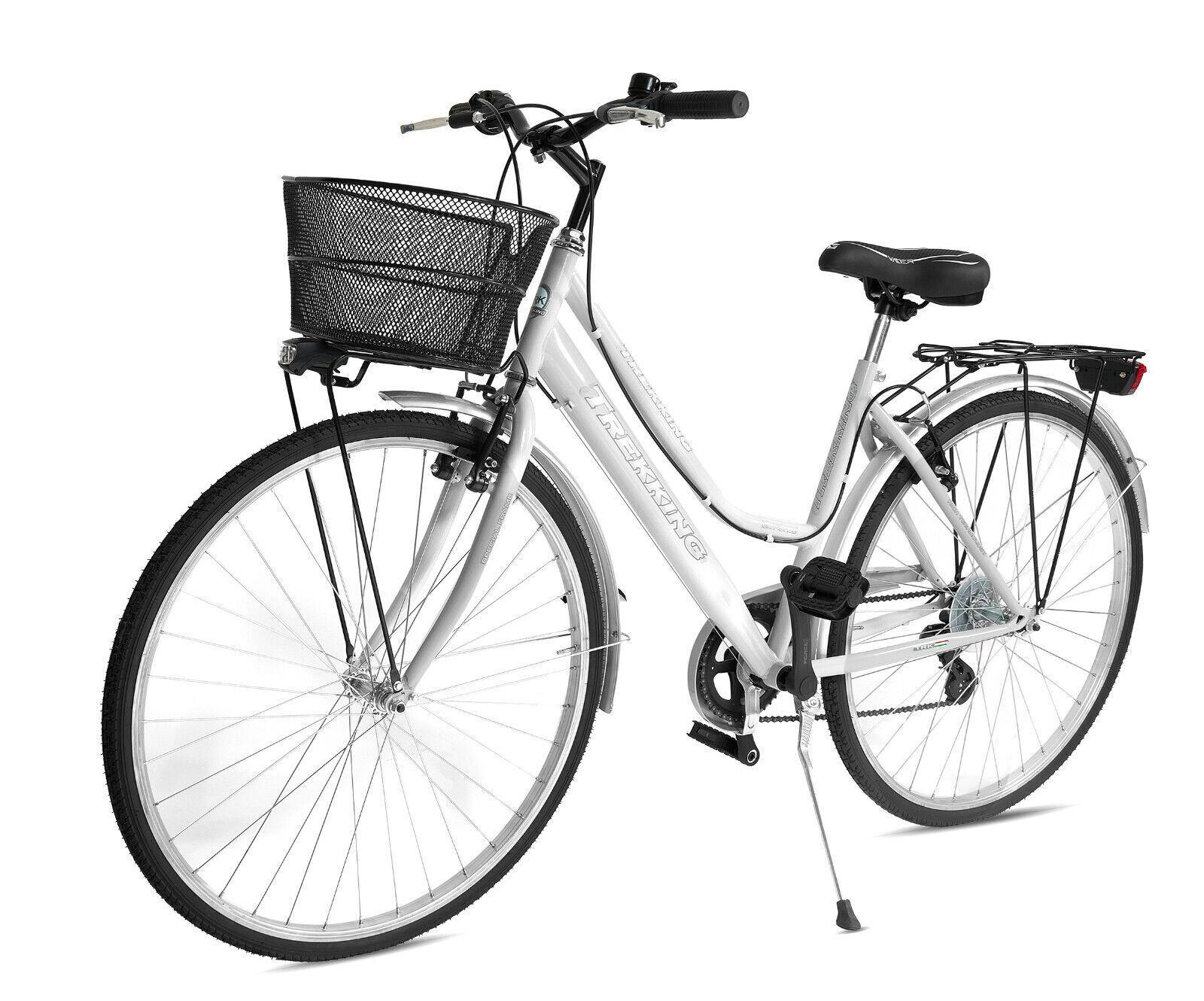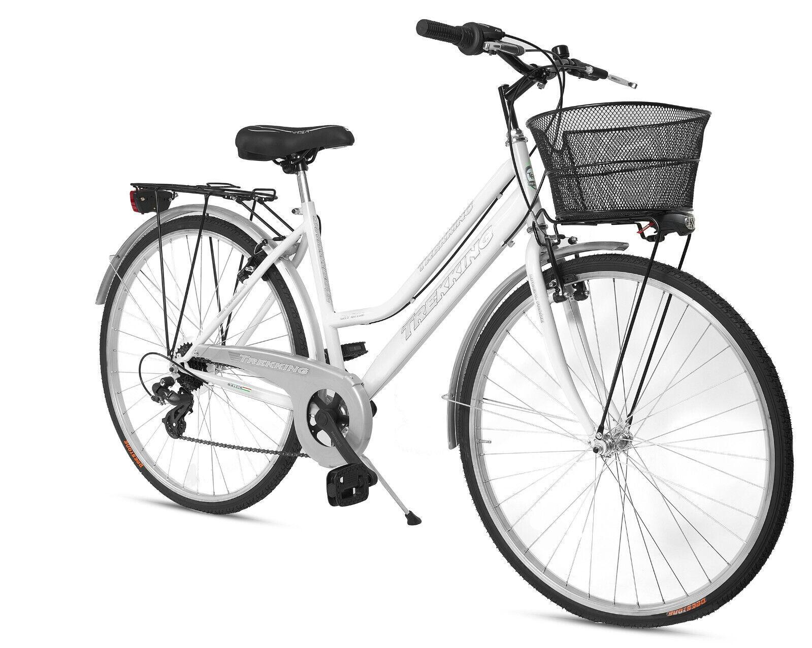 Bicicletta Donna Passeggio Misura 28 Bici Da Città Con Cambio E Cestino Bianca