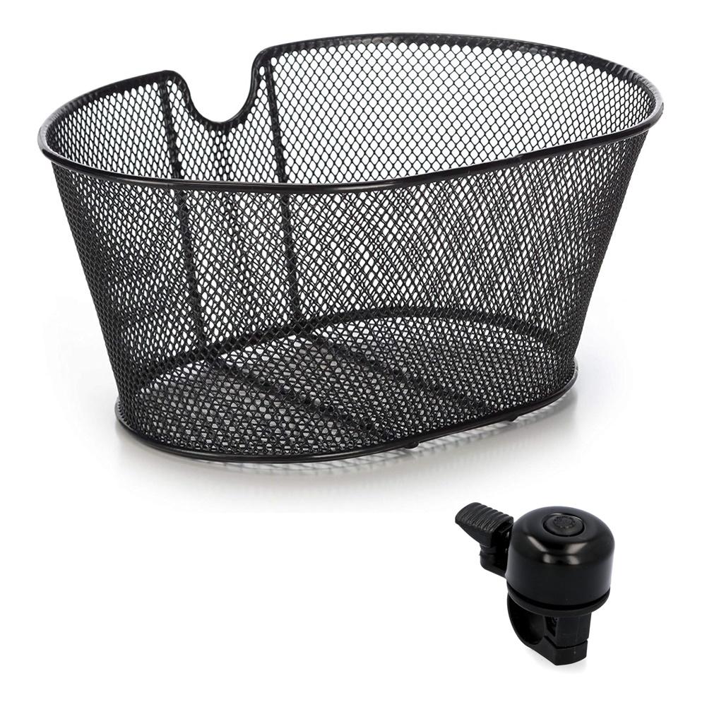 Cestino Anteriore Nero Bici Resistente Unisex + Campanello Classico Bicicletta