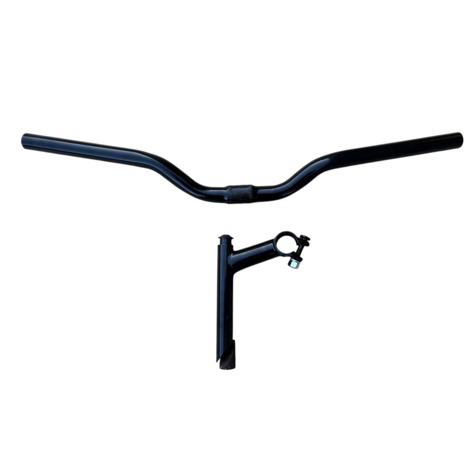 Manubrio bici acciaio nero (attacco + piega) 585L per city bike. Ergonomia e resistenza per la tua guida!