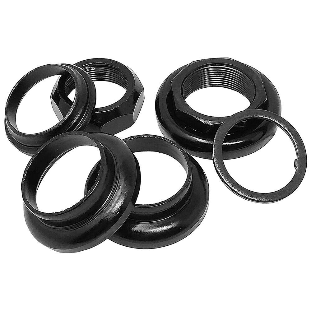 Set completo di serie sterzo per biciclette in colore nero, creato con una lavorazione eccellente, garantisce una superficie liscia e si adatta perfettamente alle bici. Composto in lega di acciaio, a prova di ruggine e resistente all'usura. Comodo e portatile risulta essere un ottimo pezzo di ricambio per la tua bicicletta. Il design presenta un colore brillante, design raffinato, aspetto elegante, ottima resistenza all'usura da agenti atmosferici. Il set comprende tutti i pezzi perla corretta installazione ed uso. Dimensioni: 1''pollice ( dado di chiusura da 30 mm e diametro del filetto 24, 6 mm)