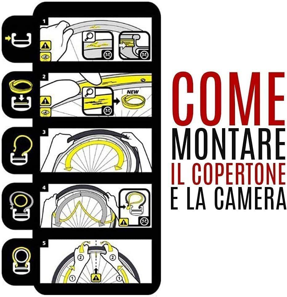 2 COPERTONI + 2 CAMERE D'ARIA 26 X 1 3/8(37-590) PER BICICLETTA STRADALE PNEUMATICO NERO IN GOMMA X BICISCATTO FISSO TREKKING CITYBIKE OLANDA GRAZIELLA PASSEGGIO (COPPIACOPERTONI + COPPIA CAMERE) 2 Copertoni 26 X 1 3/8 + 2 Camere d'Aria Copertoncino stradale per city bike, fixed, bici d'epoca, da passeggio, scatto fisso, trekking, olandese |GONFIARE A 50 – 71 P. S. I. NOTA BENE: Ricorda che gli pneumatici 26 x 13/8 sono diversi dagli pneumatici 26 x 1. 75 - Gli pneumatici 26 x 13/8 montano su un cerchio di diametro 590 mm, i 26 x 1. 75 invece montano su un cerchio di diametro 559 mm Il copertone è composto da quattro elementi fondamentali: carcassa (telaio), cerchietto per uno stabile posizionamento sul cerchio, battistrada (mescola) di gomma, protezione antiforatura (eccetto quelli speciali ultraleggeri e sportivi, in cui questa caratteristica è intenzionalmente eliminata). Le camere d'aria sono realizzate in butile, un tipo di gomma sintetica molto elastica e nello stesso tempo a tenuta d'aria. Le camere d'aria Eco velò hanno caratteristiche estreme in termini di tenuta d'aria ed elasticità e possono essere utilizzate per una vasta gamma di misure di copertoni. Descrizione prodotto; Il copertone Madicks è composto da quattro elementi fondamentali: 1. carcassa (telaio): il materiale tessile è rivestito di gomma su ambo i lati e tagliato con un angolo di 45 gradi, garantendo la futura stabilità dello pneumatico; 2. cerchietto: determina il diametro e garantisce uno stabile posizionamento sul cerchio; 3. battistrada (mescola) di gomma; 4. protezione antiforatura. Camere d'aria 26 x 1 3/8 x 1 1/2 con valvola Regina (italiana) adatte ai pneumatici da 26 pollici. Le camere d'aria sono antiforatura, realizzate in butile, un tipo di gomma sintetica molto elastica e nello stesso tempo a tenuta d'aria. In base alle mescole utilizzate, si possono avere differenti qualità di prodotto: le camere d'aria hanno caratteristiche estreme in termini di tenuta d'aria ed elasticità e possono essere utilizzate per una vasta gamma di misure di copertoni.