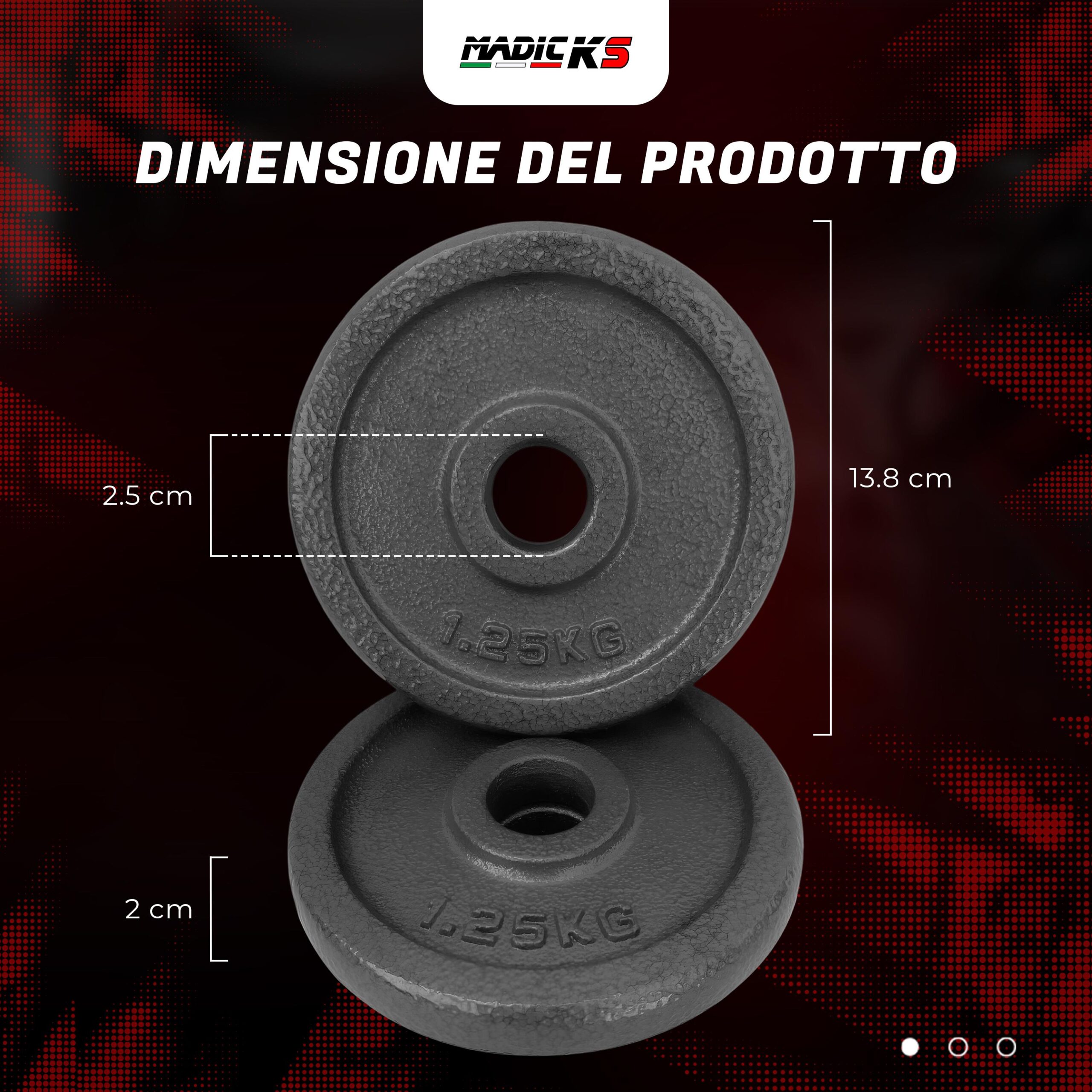 Disco Ghisa Nero 1,25 Kg Foro ø25mm Per Bilanciere Manubri Palestra Home Fitness
