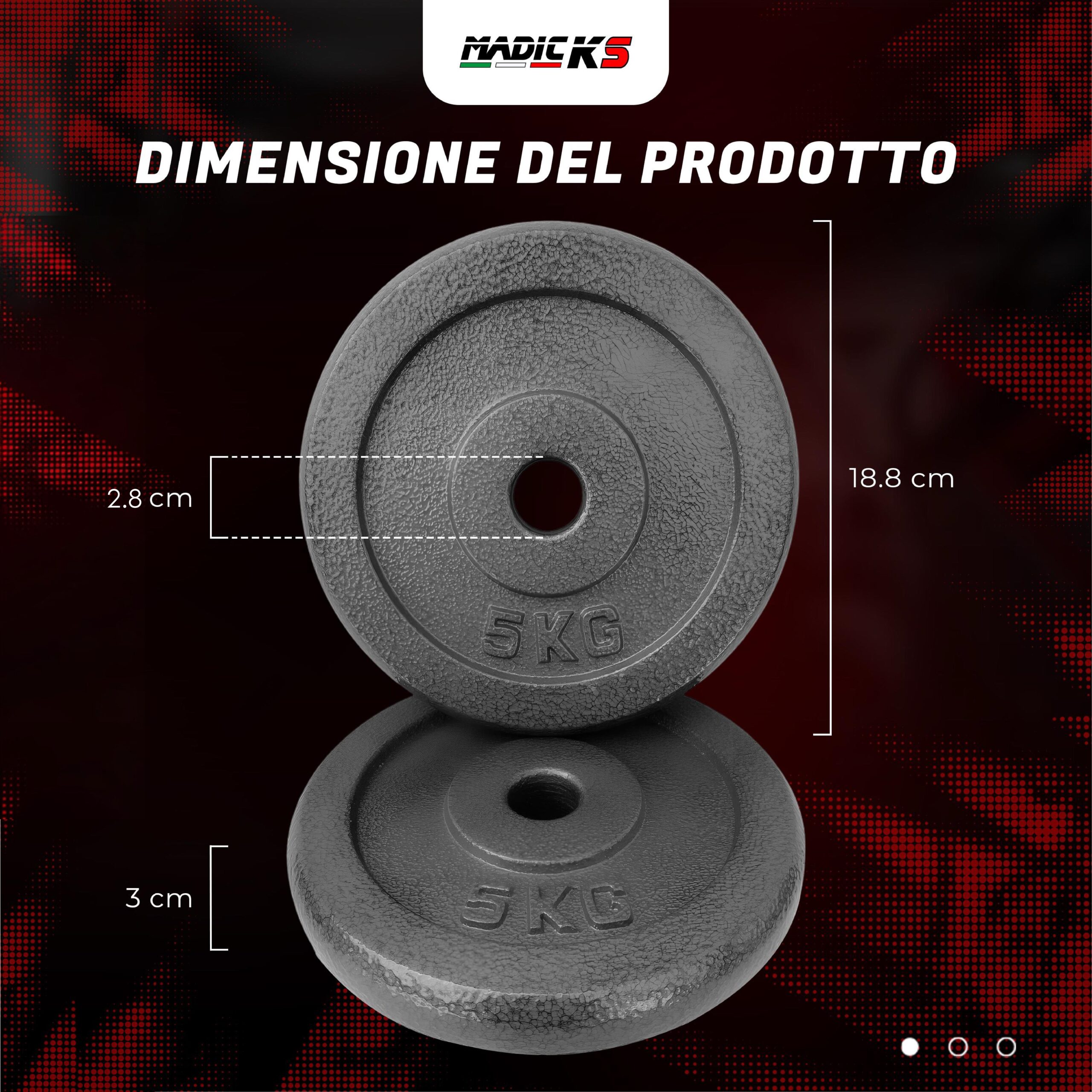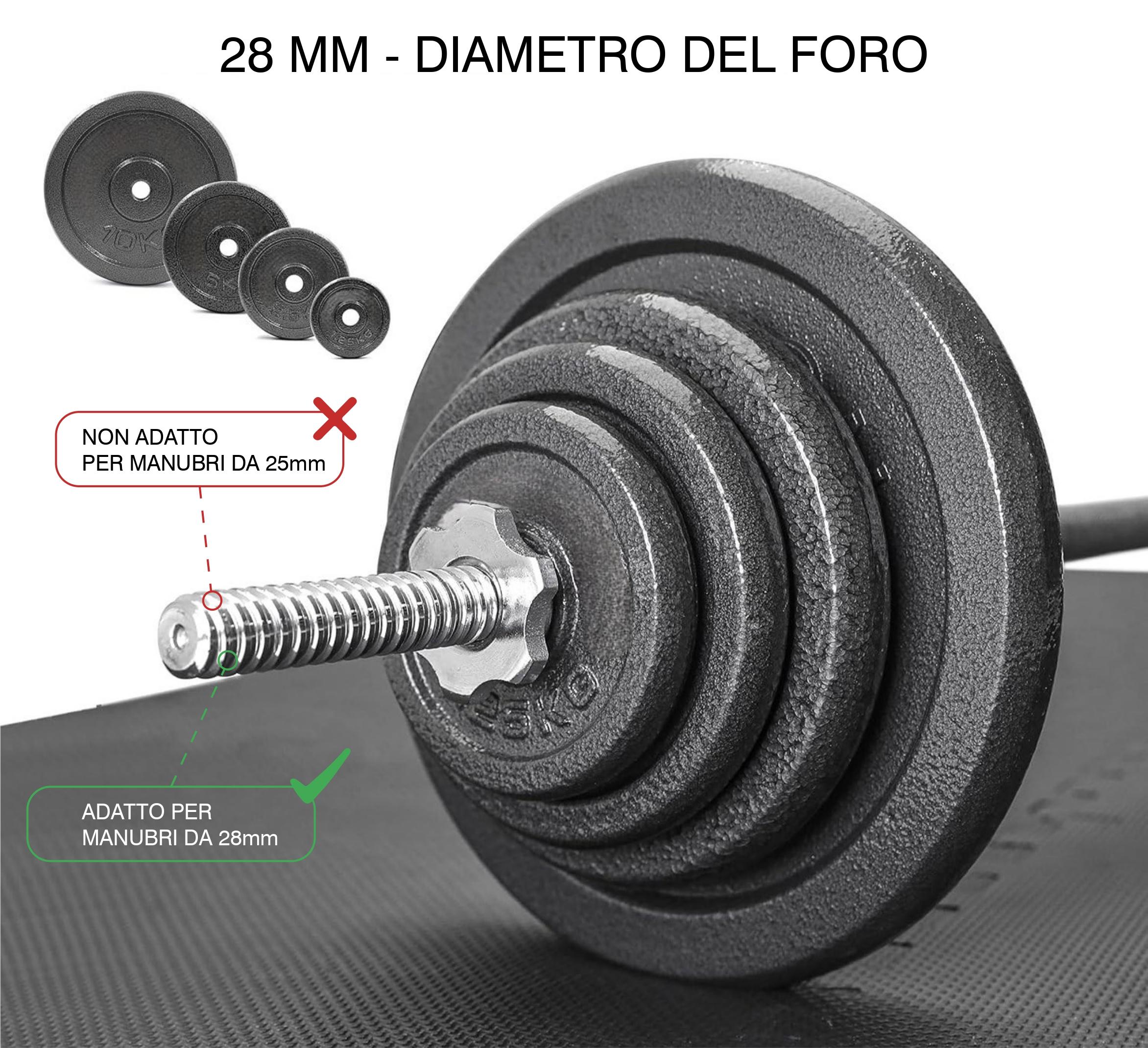 Disco Ghisa Nero 5 Kg Foro ø25mm Per Bilanciere Manubri Palestra Home Fitness