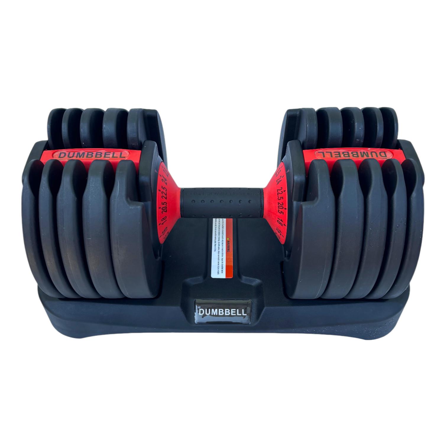 Manubrio regolabile da 24 kg 15 livelli di peso per allenamenti versatili e salvaspazio Porta la qualità della palestra direttamente a casa tua con il manubrio regolabile da 24 kg, un’attrezzatura progettata per soddisfare ogni esigenza di allenamento. Con 15 livelli di peso disponibili (2. 5, 3. 5, 4. 5, 5. 5, 6. 5, 8, 9, 10, 11. 5, 13. 5, 16, 18, 20. 5, 22. 5, 24 kg), puoi adattare ogni esercizio ai tuoi obiettivi di forza, resistenza o tonificazione. Il sistema di regolazione posizionato ai lati del manubrio ti consente di selezionare il peso desiderato in modo pratico e funzionale. Questa caratteristica, unità alla robustezza della struttura, garantisce stabilità durante l’uso, permettendoti di concentrarti solo sul tuo allenamento. Le piastre metalliche rivestite con plastica di alta qualità offrono un ulteriore vantaggio: eliminano il rumore causato dal contatto tra i pesi, tipico dei manubri convenzionali, rendendo ogni sessione più silenziosa e confortevole. Il design salvaspazio è il punto forte di questo manubrio: un singolo set sostituisce 15 pesi tradizionali, eliminando l’ingombro e riducendo i costi. La base inclusa mantiene il manubrio stabile e ordinato, ottimizzando la tua area fitness e rendendola sempre pronta per l’uso. Realizzato con materiali resistenti e progettato con un’ergonomia avanzata, il manubrio garantisce una presa sicura e confortevole, anche durante gli esercizi più impegnativi. Perfetto per la tua Home Gym, è adatto sia a principianti che ad atleti esperti. Scegli il manubrio regolabile da 24 kg per un allenamento versatile, efficace e ben organizzato, che combina praticità, qualità e un design pensato per ottimizzare il tuo spazio domestico.