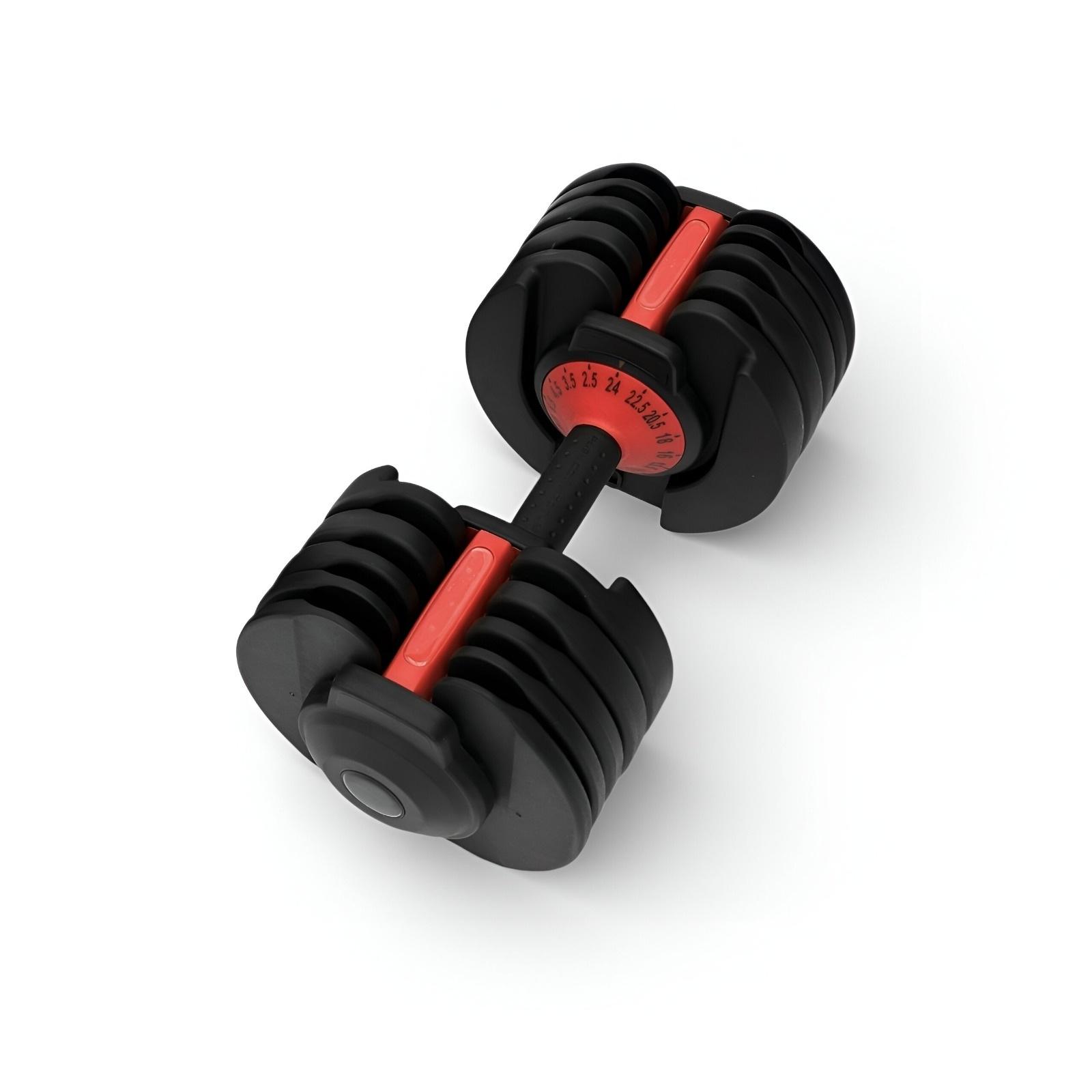Manubrio regolabile da 24 kg 15 livelli di peso per allenamenti versatili e salvaspazio Porta la qualità della palestra direttamente a casa tua con il manubrio regolabile da 24 kg, un’attrezzatura progettata per soddisfare ogni esigenza di allenamento. Con 15 livelli di peso disponibili (2. 5, 3. 5, 4. 5, 5. 5, 6. 5, 8, 9, 10, 11. 5, 13. 5, 16, 18, 20. 5, 22. 5, 24 kg), puoi adattare ogni esercizio ai tuoi obiettivi di forza, resistenza o tonificazione. Il sistema di regolazione posizionato ai lati del manubrio ti consente di selezionare il peso desiderato in modo pratico e funzionale. Questa caratteristica, unità alla robustezza della struttura, garantisce stabilità durante l’uso, permettendoti di concentrarti solo sul tuo allenamento. Le piastre metalliche rivestite con plastica di alta qualità offrono un ulteriore vantaggio: eliminano il rumore causato dal contatto tra i pesi, tipico dei manubri convenzionali, rendendo ogni sessione più silenziosa e confortevole. Il design salvaspazio è il punto forte di questo manubrio: un singolo set sostituisce 15 pesi tradizionali, eliminando l’ingombro e riducendo i costi. La base inclusa mantiene il manubrio stabile e ordinato, ottimizzando la tua area fitness e rendendola sempre pronta per l’uso. Realizzato con materiali resistenti e progettato con un’ergonomia avanzata, il manubrio garantisce una presa sicura e confortevole, anche durante gli esercizi più impegnativi. Perfetto per la tua Home Gym, è adatto sia a principianti che ad atleti esperti. Scegli il manubrio regolabile da 24 kg per un allenamento versatile, efficace e ben organizzato, che combina praticità, qualità e un design pensato per ottimizzare il tuo spazio domestico.