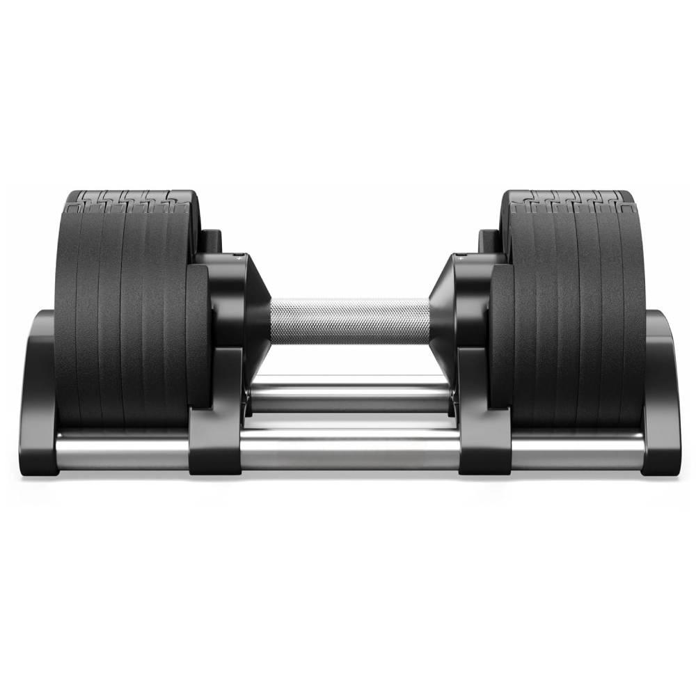Seleziona il peso desiderato in meno di 3 secondi: basta inserire il manubrio nella base e ruotare l’impugnatura per regolare il carico tra 2 e 24 kg, con incrementi da 2 kg.